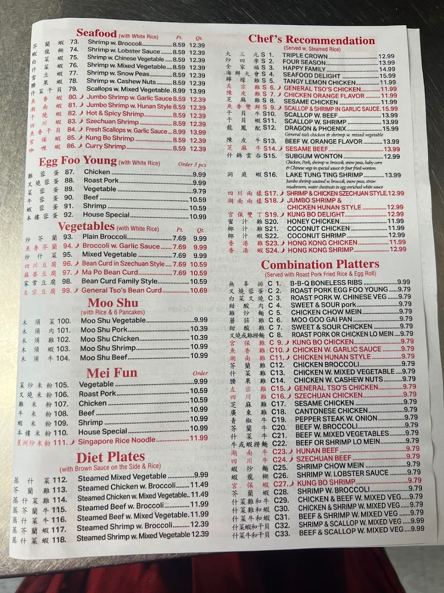 The menu at Great Wall offers a straightforward selection of Chinese and American-inspired dishes, perfect for casual meals any day of the week. Whether you're stopping by for a quick takeout or enjoying a relaxed dinner, you'll find a comforting variety of options that suit simple cravings and longer, leisurely meals alike.